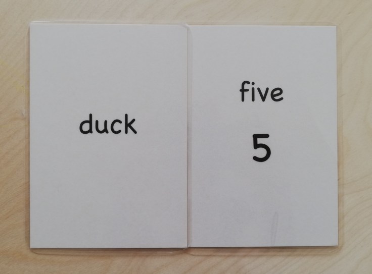 Come accennavo in un altro post, ho voluto esporre il mio bimbo alla lingua inglese fin da piccolissimo. Ho acquistato queste flashcard quando aveva un anno e quattro mesi e abbiamo iniziato a giocarci da subito. Le immagini erano perfette per interessarlo e io intanto pronunciavo ad alta voce la parola associata. In poco tempo era in grado di dire da solo la parola inglese. Per un po’ di tempo le abbiamo messe da parte, ma recentemente sono tornate ad interessarlo. Se prima erano solo le immagini a catturare la sua attenzione, adesso ho notato uno step successivo: riconosce i numeri e alcune scritte (per esempio, deve aver memorizzato la scrittura di “bed”, perché pronuncia la parola prima di aver visto l’immagine).