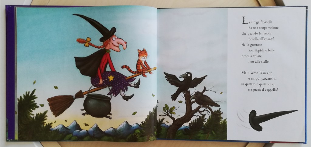 La strega Rossella è uno dei primi loro libri che ho acquistato, quando Federico aveva poco più di due anni. La storia – una strega amichevole, un po’ pasticciona, che viene salvata da un terribile drago grazie all’aiuto dei suoi amici – è abbastanza articolata (come anche per gli altri libri) e temevo richiedesse un livello di attenzione non ancora alla sua portata. Invece mi ha sorpreso. Sicuramente occorre una interpretazione un po’ caricaturale da parte del genitore, così da catturare ancora di più l’attenzione del bimbo. Inoltre, i testi in rima sono perfetti per dare musicalità e aumentare ulteriormente il coinvolgimento. Secondo me, i libri di Donaldson e Scheffler sono dei veri must-have in qualsiasi biblioteca di casa.