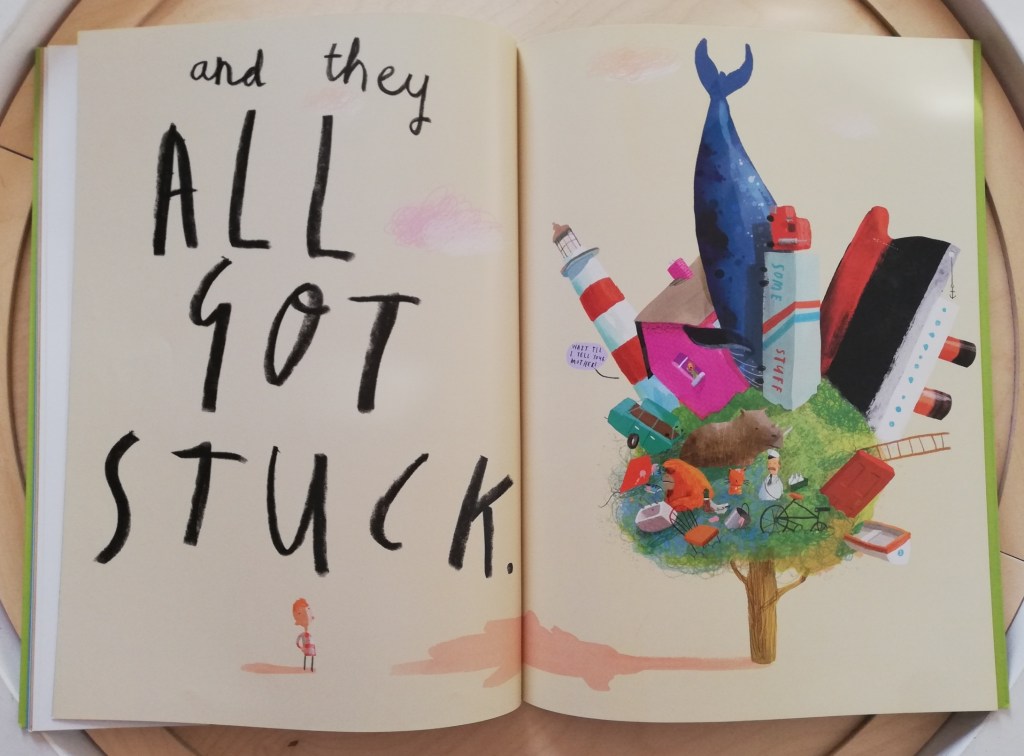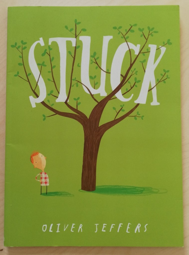 Dopo una luuunga assenza, ritorno con un libro davvero divertente, Stuck di Oliver Jeffers, uno dei preferiti del mio bimbo la scorsa estate. Si tratta di una storia in cui l’elemento dell’assurdo è portato all’estremo e proprio per questo costituisce motivo di grande divertimento per i bimbi.