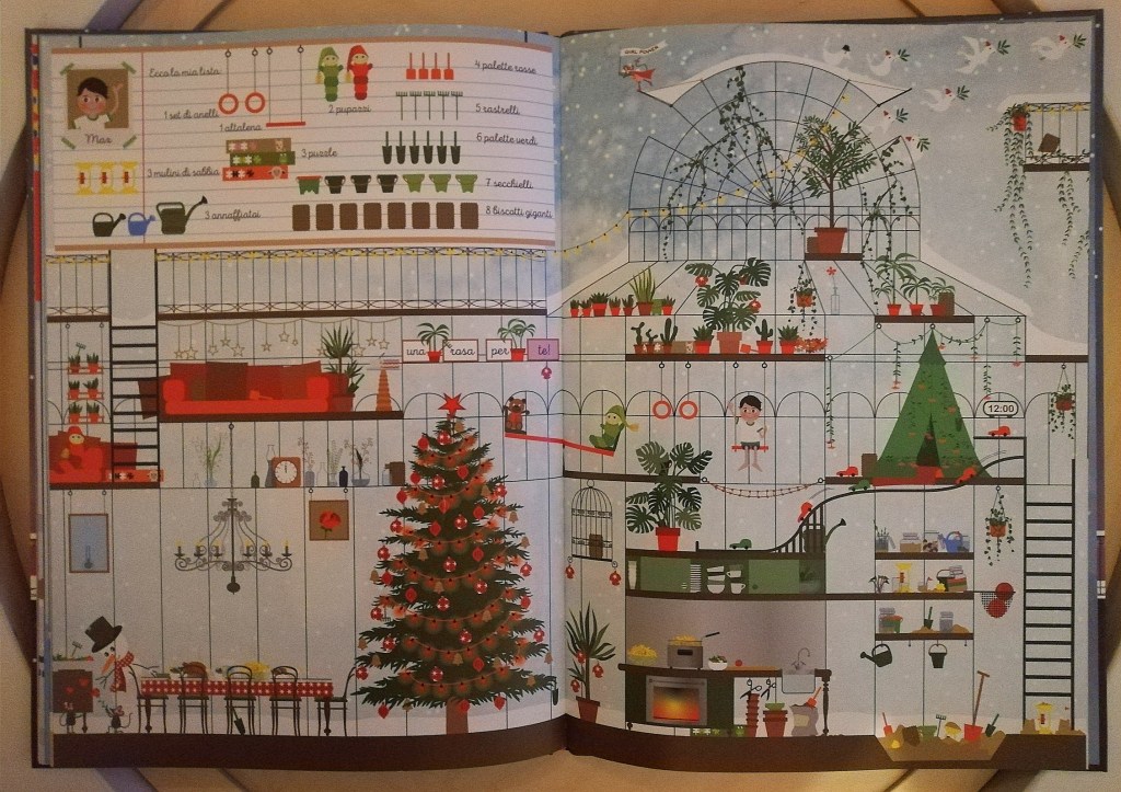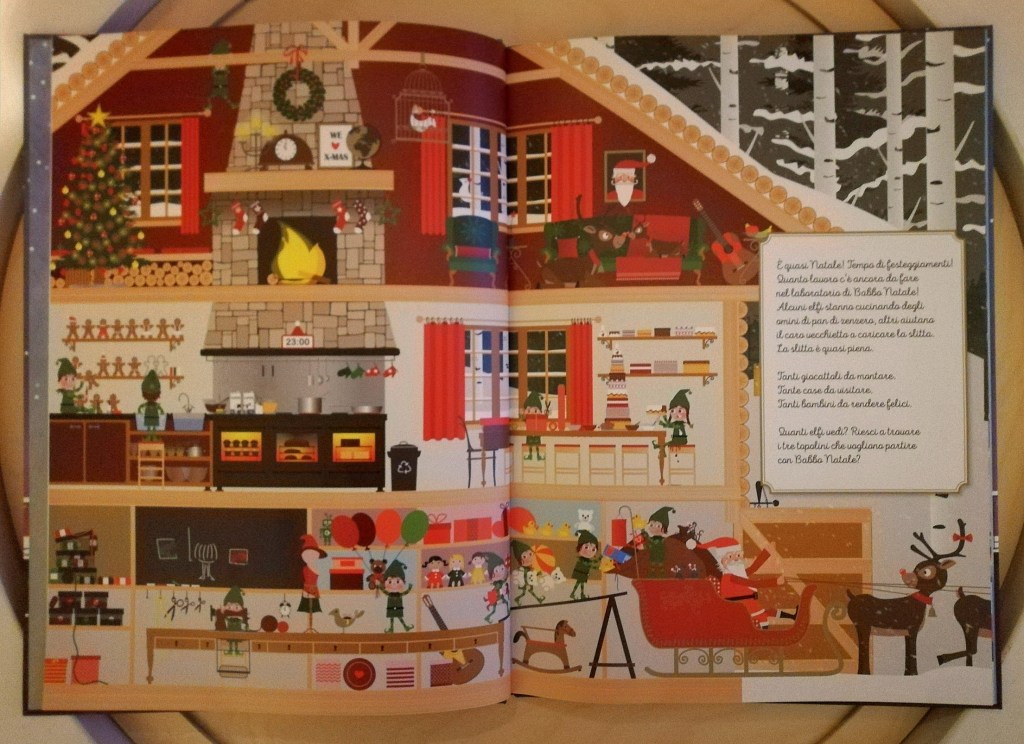 Si tratta in fondo di un libro gioco, in cui i bimbi di divertono a scovare i vari doni elencati nelle letterine e, così facendo, contano. Sviluppano la capacità di osservazione e la pazienza, perché trovare 8 lecca-lecca o 10 bastoncini di zucchero non è così immediato per loro… e nemmeno per noi, a esser sinceri. Ci sono poi una miriade di altri dettagli divertenti, come i tre topolini che accompagnano Babbo Natale nel suo viaggio e fanno un po’ di marachelle. Insomma, ho trovato questo libro perfetto per parlare del Natale nel modo più tradizionale, con spunti comici e finalità educative importanti.