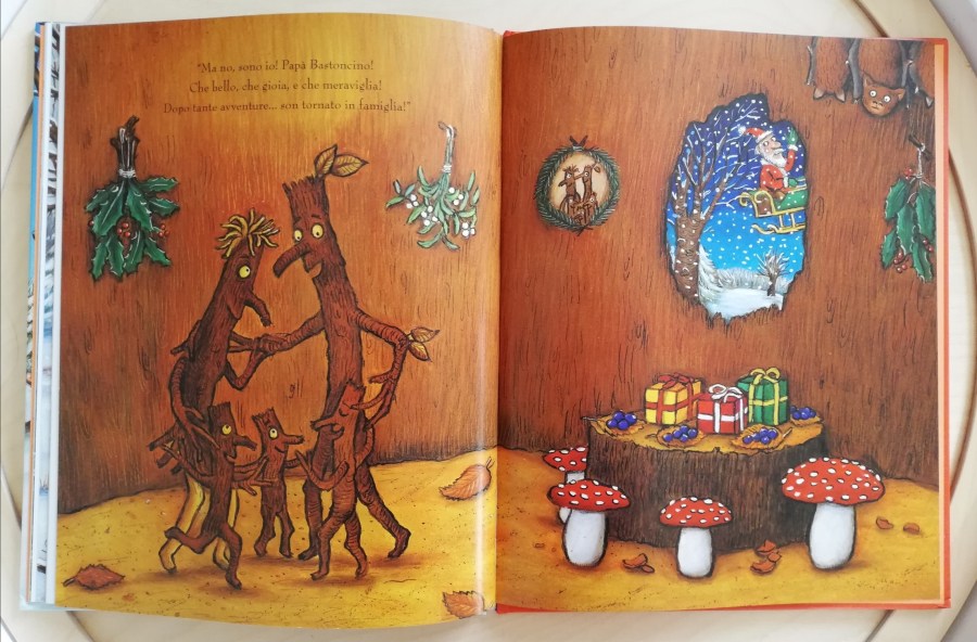 Ecco il secondo libro che ho scelto quest’anno per accompagnare il Natale (il primo è qui). Niente di meglio di un gran classico, uno dei tanti del celebro duo Donaldson-Scheffler. Si tratta in realtà di una storia che si svolge in un arco di tempo non limitato al Natale, ma che abbraccia tutto l’anno, e quindi è adatta sempre. Sul finale però compare Babbo Natale e, insomma, si presta bene come storia natalizia 🎅. Quest’anno ne hanno pubblicato infatti anche un’edizione con copertina rosso Natale, ma il racconto è il medesimo e perciò ho preferito acquistare la versione classica, quella delle immagini sotto.